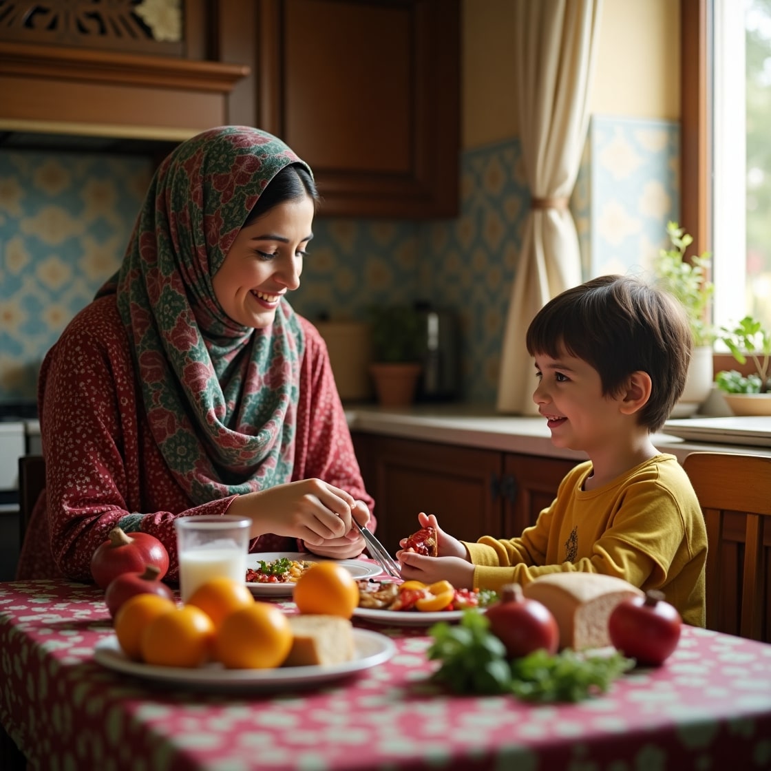 • صبحانه: املت شامل سبزیجات و ماهی قزل‌آلا به همراه یک نان سبوس‌دار.